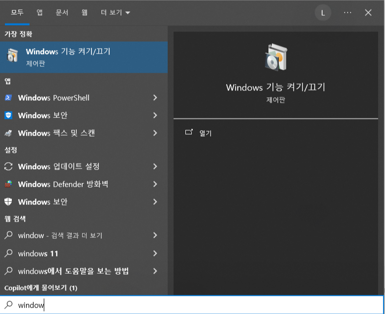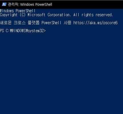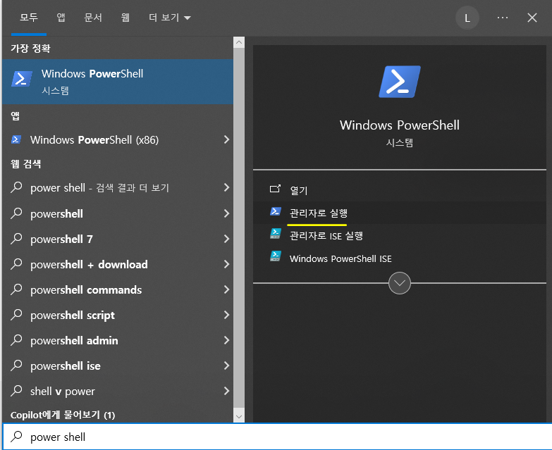 window 검색으로 PowerShell을 검색하여 관리자 권한으로 실행한다