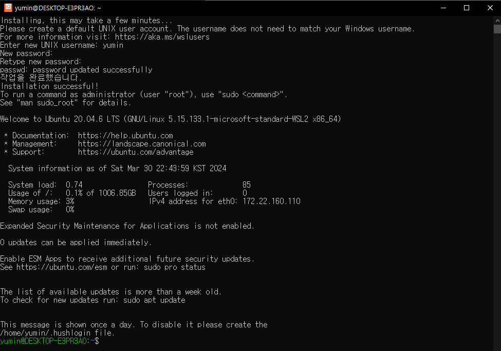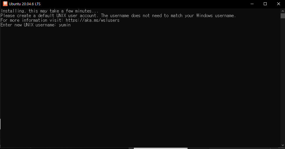 Ubuntu에서 사용할 이름 및 패스워드 설정 (계정은 소문자로)