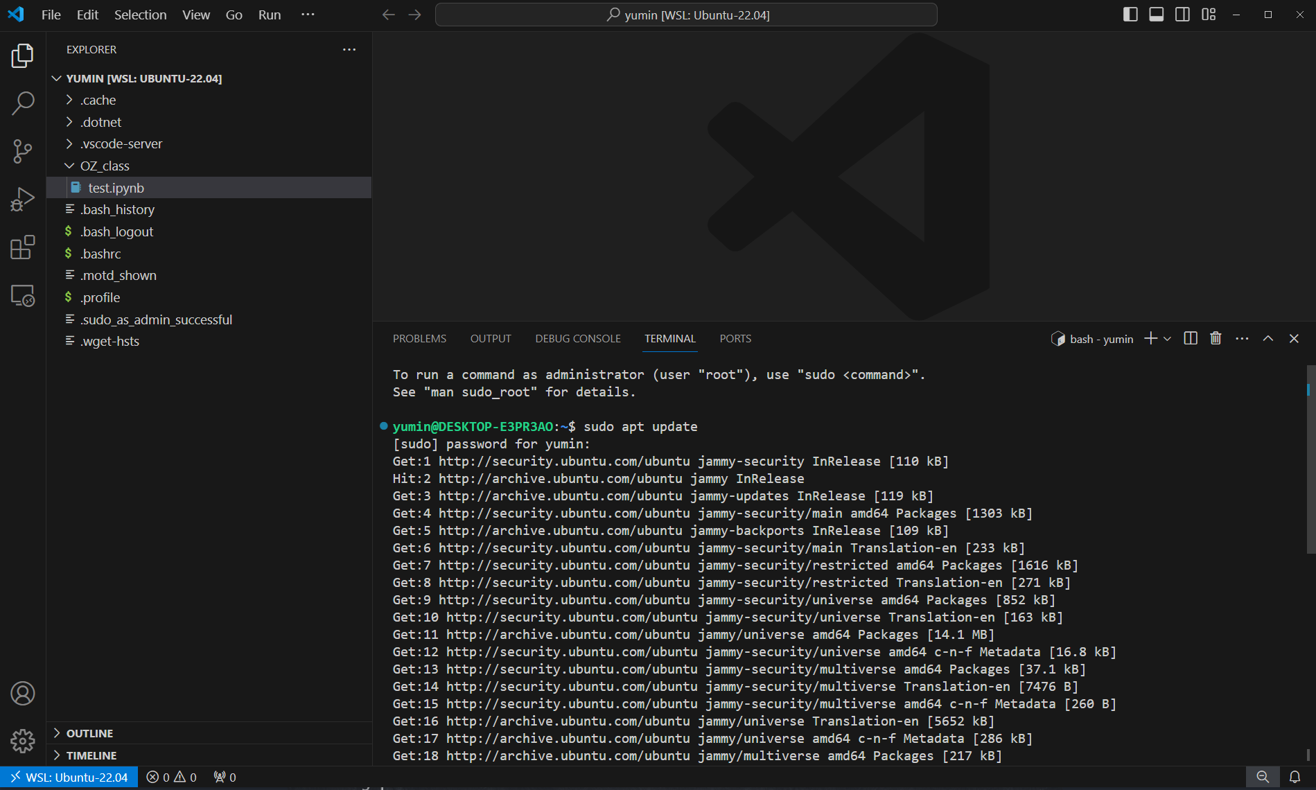 ctrl + j 를 눌러 VScode에서 터미널을 열어 커널 업데이트를 해주자.