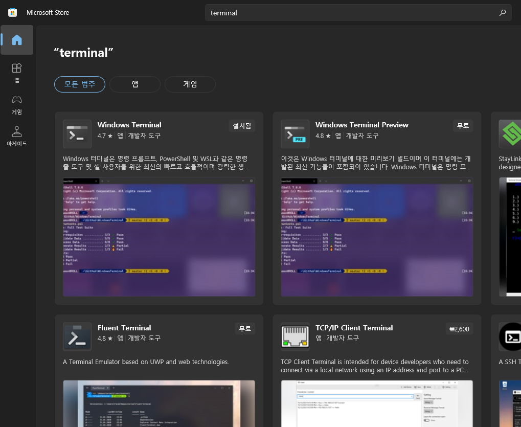 window 검색으로 Microsoft Store에 접속 → Windows Terminal 설치