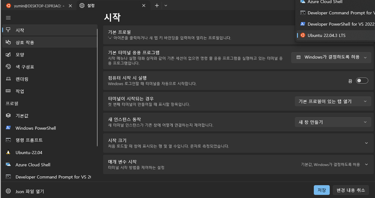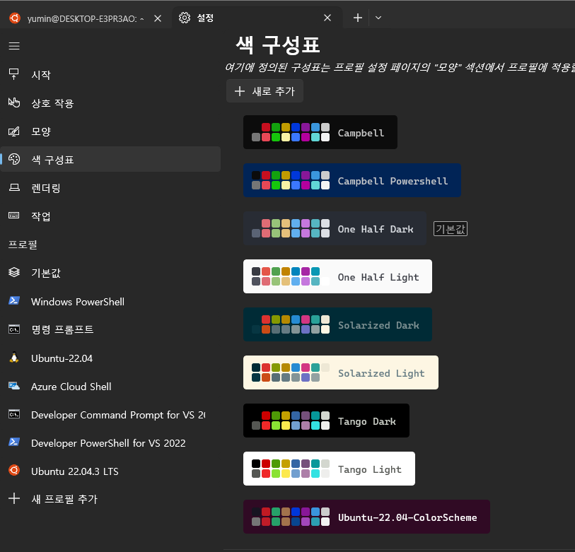 기본 프로필 설정으로 Ubuntu 20.04를 한 뒤 저장 해주자.