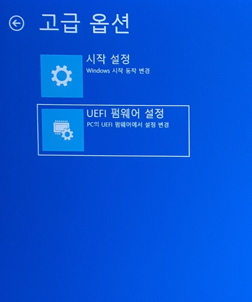 문제 해결 → UEFI 펌웨어 설정 → 다시 시작을 눌러준다.