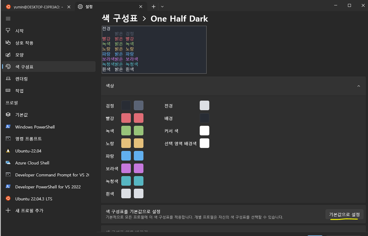 색 구성표에서 마음에 드는 테마를 선택하여 기본값 설정을 해준다