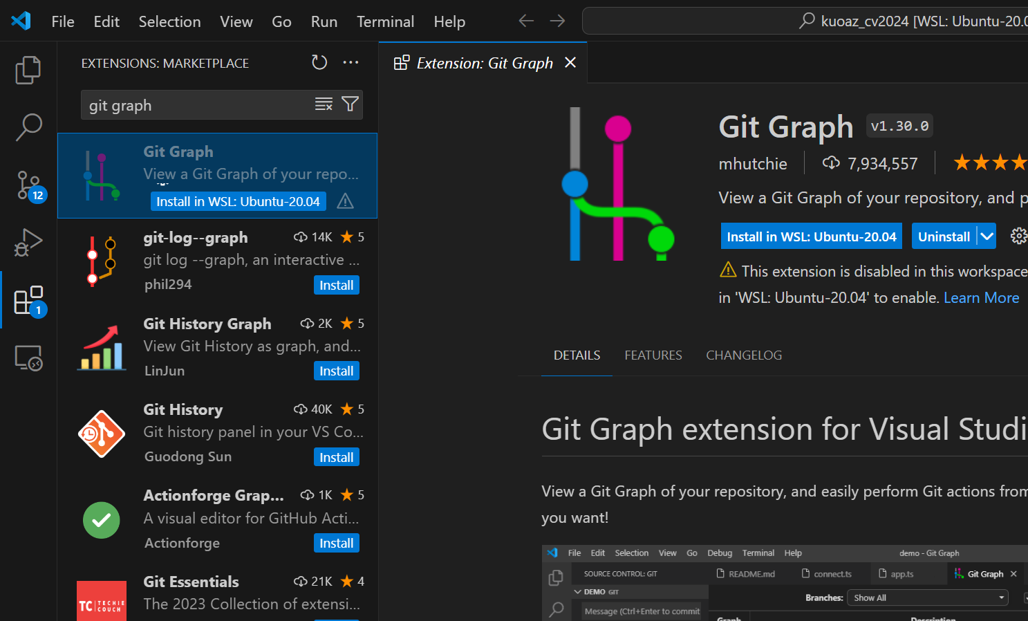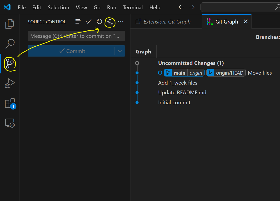 다시 vscode에 들어와서 extention의 git graph를 설치하도록 하자.
