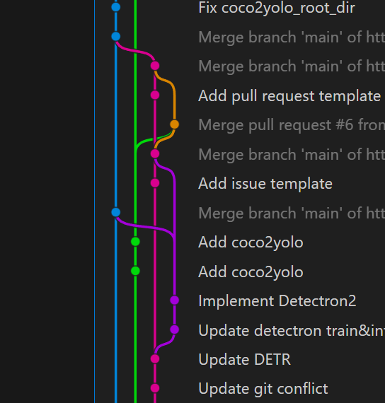 git graph를 통해서 누가 어떤 작업을 했는지 history가 뜬다.