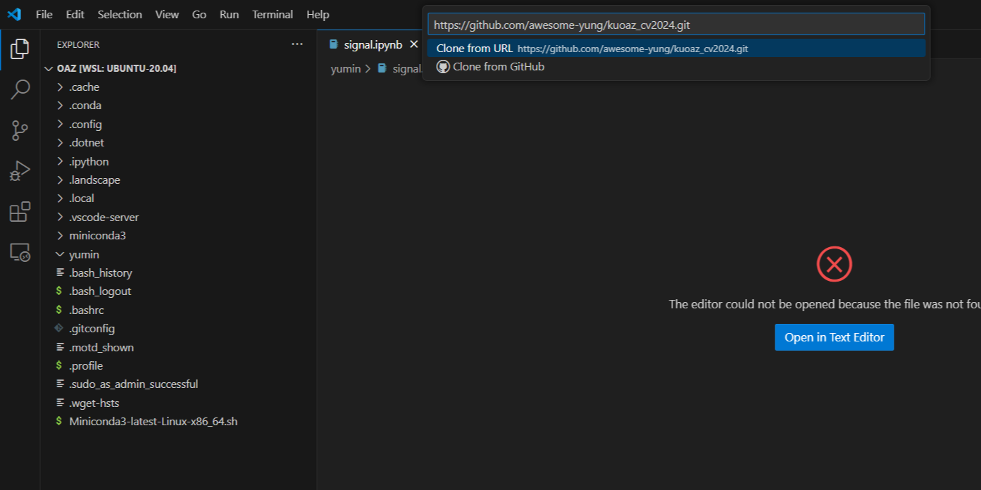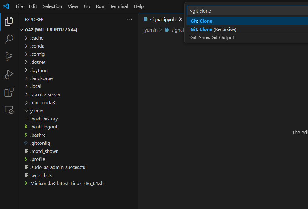 이제 vscode에 들어가서 F1을 누르고 git clone을 검색하자