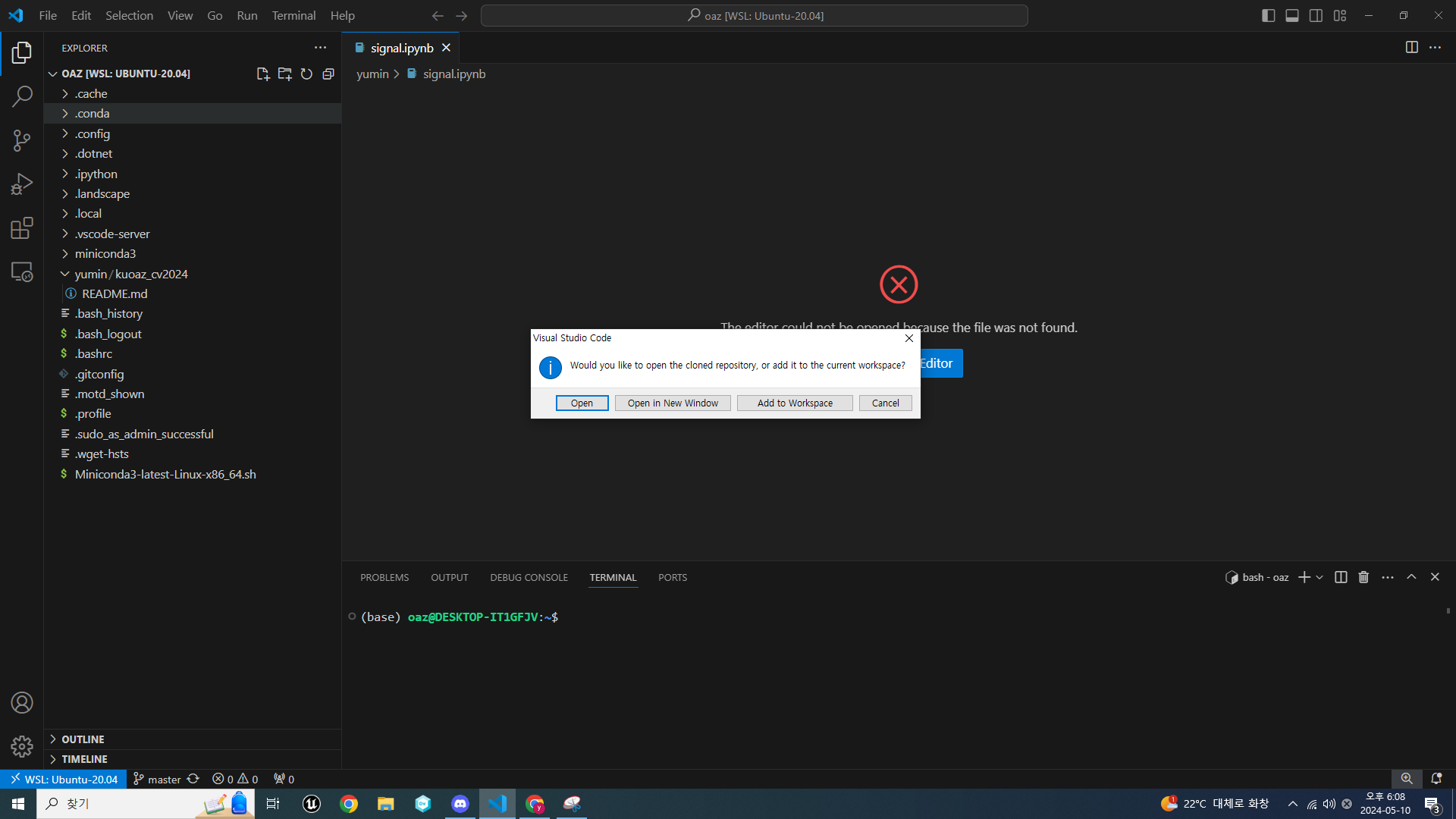 이제 작업할 공간을 내 로컬에 불러오자.